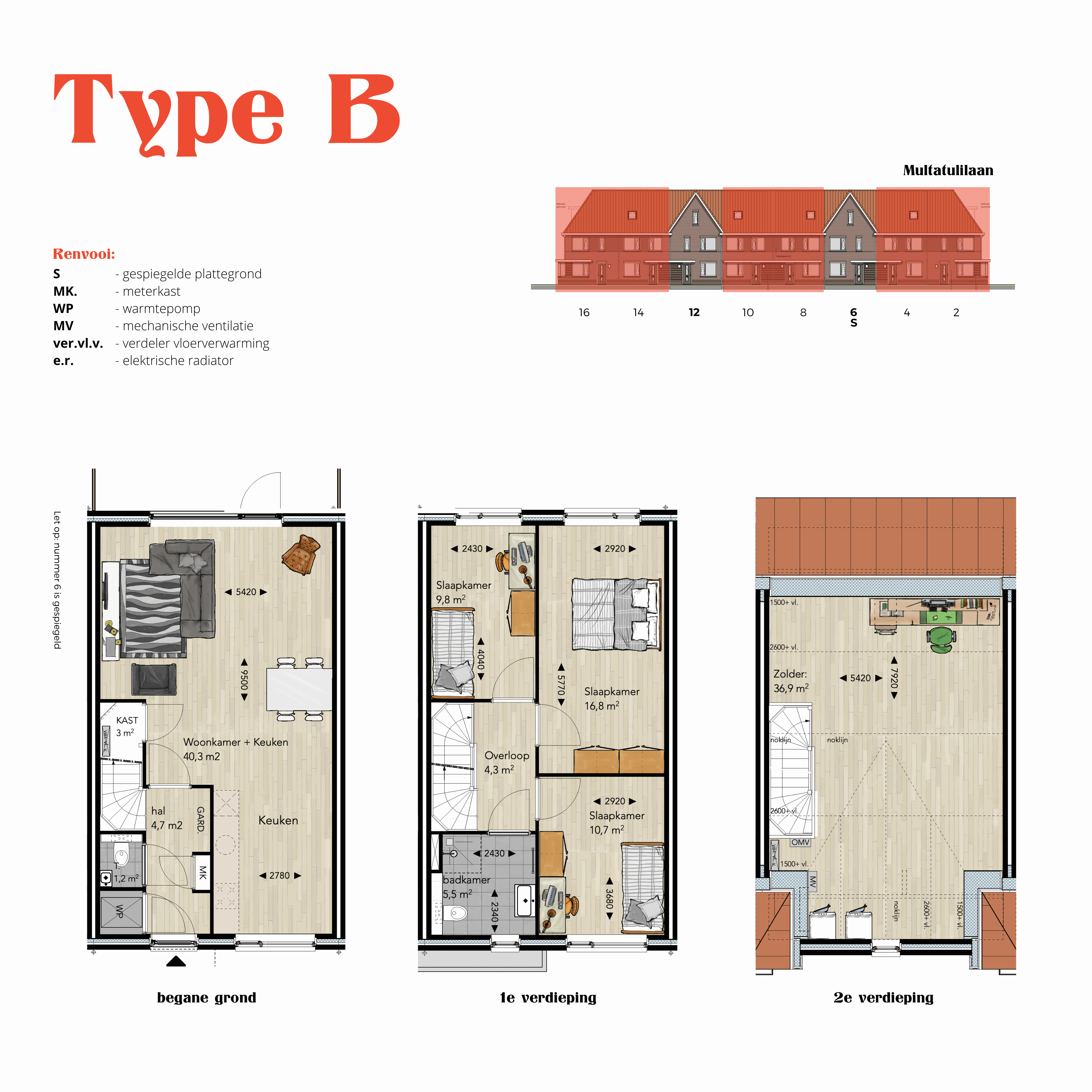 * let op: de indeling van Multatulilaan 6 is gespiegeld t.o.v. de weergegeven plattegronden.